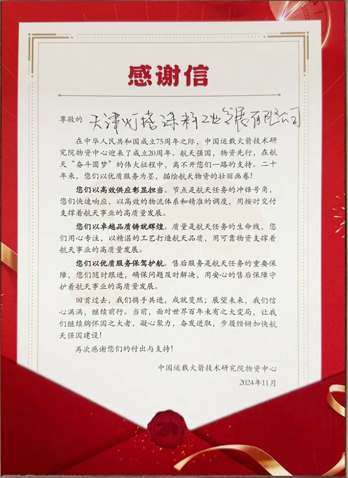 @北新燈塔,你有一封來自中國運載火箭技術研究院物資中心的表揚信