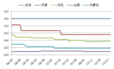 天津以待需求依舊疲軟,且未出現(xiàn)搶工期施工現(xiàn)象,加之外來水泥的壓力,部分廠家價格較前期略有下滑,8月底P.O42.5散裝市場主流價格在250-260元/噸左右,企業(yè)以現(xiàn)金交易為主,賒銷現(xiàn)象有所下降。天津港爆炸對區(qū)域水泥產銷未造成明顯影響,但各類安檢明顯加強。
