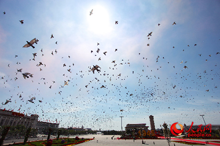 7萬只和平鴿、7萬個氣球飛向天際,閱兵式圓滿結束。網(wǎng)友許愿國家富強繁榮、世界和平永存。