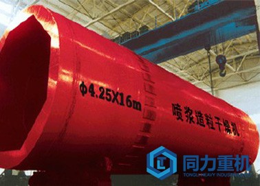 噴漿造粒干燥機工作原理熔融液體在高壓泵的作用下進(jìn)入特殊設(shè)計的霧化噴頭,被霧化成細(xì)小的液滴,并與回轉(zhuǎn)圓筒內(nèi)的細(xì)小顆粒晶核相接觸,液滴粘附在晶核表面在高溫干燥介質(zhì)的作用下,迅速完成熱質(zhì)交換過程,顆粒增大,增大后的顆粒被篩分,細(xì)小的顆粒返回作為晶核;也有部分成為粉狀物料,也被返回作為晶核.