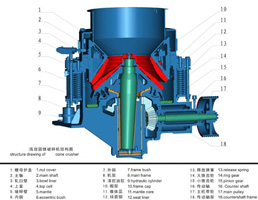 2、復(fù)合圓錐破碎機本體均為鑄鋼結(jié)構(gòu),在重載部位高應(yīng)力點設(shè)置有加強筋。