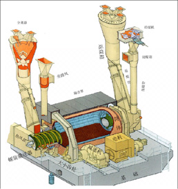 雙進雙出球磨機具有兩個完全對稱的粉磨回路,其工作原理如下:原煤通過能自動控制速度的給煤機進入落煤管,靠重力的作用落入輸送裝置的下方,被旋轉(zhuǎn)的絞籠送入磨煤機的筒體,旋轉(zhuǎn)的筒體內(nèi)裝有一定量的鋼球,把原煤研磨成煤粉。一次風從磨煤機兩側(cè)的中空管進入磨機的筒體,對原煤和煤粉進行干燥,并將磨制好的煤粉通過絞籠體的環(huán)形通道輸送到磨煤機上方的分離器中,不合格的粗煤粉返回筒體內(nèi)重新粉磨,合格的細粉被送到鍋爐的燃燒器。部分一次風進入混料箱,對原煤進行充分預干燥后進入磨煤機分離器,與入磨一次風混合,共同完成對煤粉的進一步干燥和輸送。